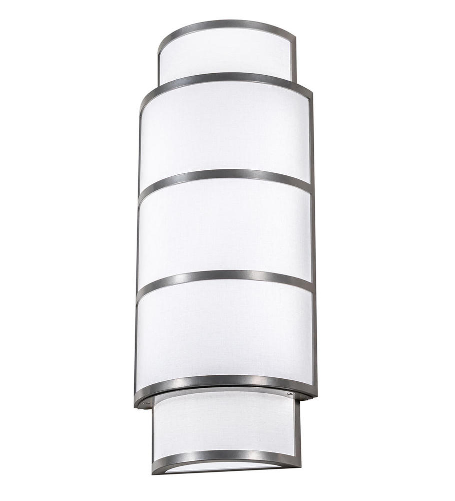 A luxurious multi dimensional design reveals an elegant, distinguished architectural look. Clean sophistication astounds with round surfaces and straight lines to enhance a room while providing an effective source of light. This ADA Compliant fixture features a cylindrical diffuser in White Textrene, which is enhanced with upper and lower diffusers in Statuario Idalight. Integral LEDs deliver energy savings and long life. Handcrafted in our 180,000 square foot manufacturing facility in Yorkville, New York. Diffuser colors, metal finishes and fixture sizes can be customized. UL and cUL listed for dry and damp locations however we do not recommend installing it in spaces that experience a large amount of moisture due to the fabric shades.