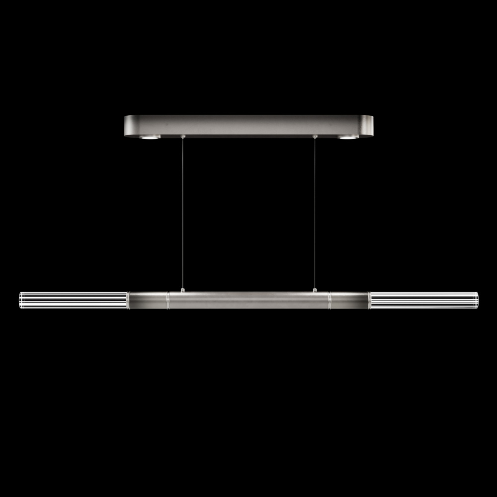 Suspended by adjustable cords, this LED fixture features straight tubular lines and the inclusion of metals carefully handcrafted to transition from parchment to magnificent glass, culminating in a stunning beam of light. Available in a wide range of exquisite finishes, including our five standard finishes and our newest Soft Ombre Bronze & Soft Ombre Silver, with choice parchment colors. Also available with no parchment. Upper & lower lights can be wired independently for single or dual light control.