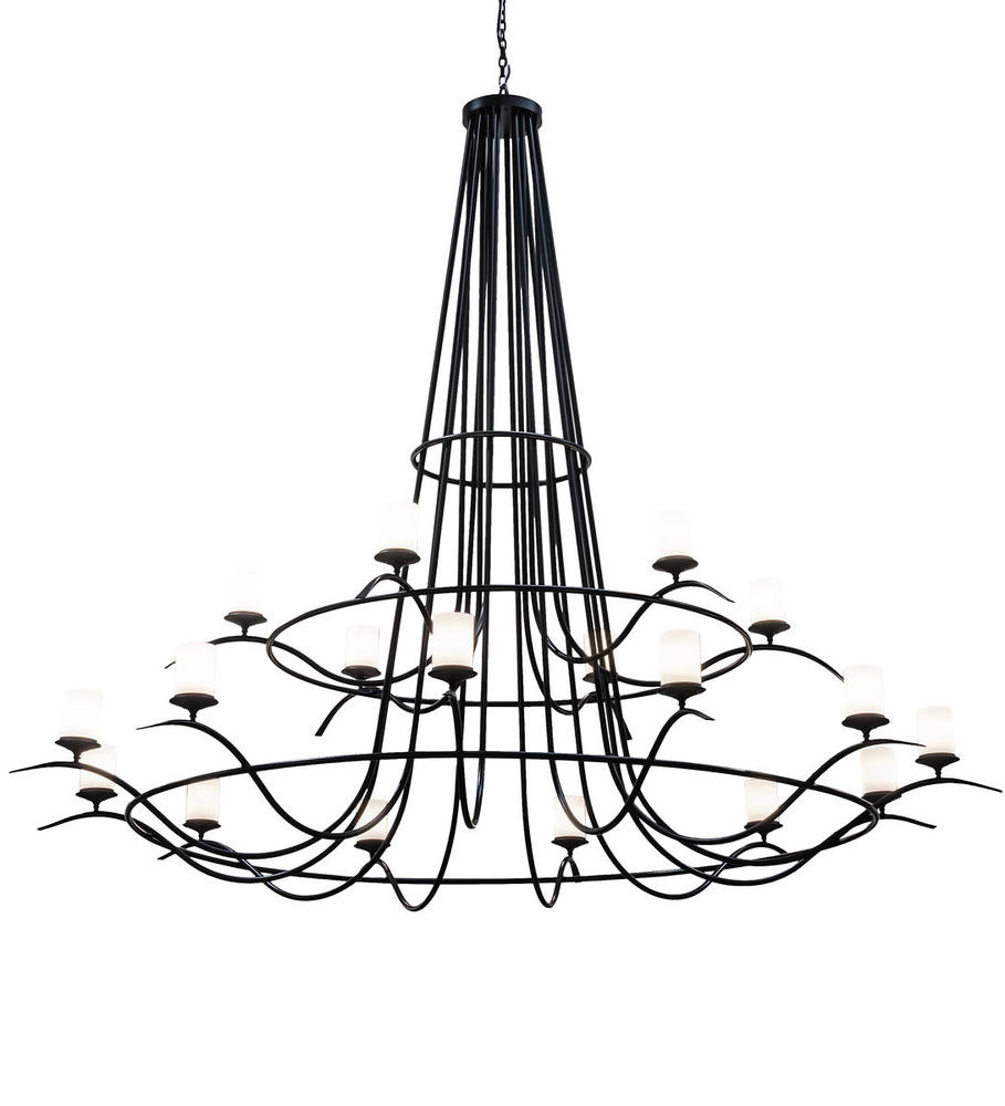 Add graceful detail and beautiful ambient illumination to any interior decor with this elegant and elaborate Octavia lighting design. 18 Statuario Idalight Cylindres are perched on delicate bobeches, which are embraced by an exquisite curved arms with frame in a Solar Black finish. This exquisite chandelier is perfect for creating a welcoming environment in any commercial, residential or hospitality space. Overall height ranges from 102 to 121 inches as chain length can be easily adjusted in the field. Handcrafted in our 180,000 square foot manufacturing facility in Yorkville, New York. Diffuser colors, metal finishes and fixture sizes can be customized to your needs. UL and cUL listed for dry and damp locations.