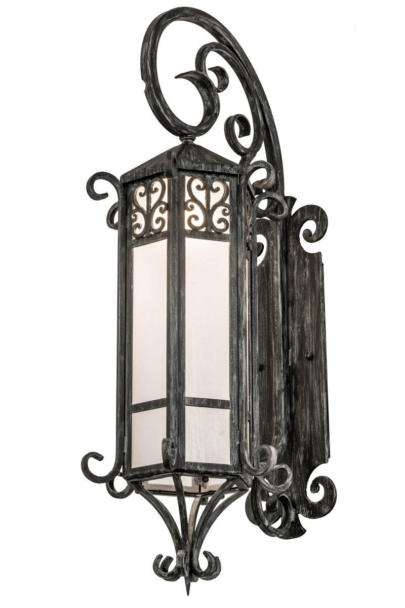 Grand stature and an ornate hand-forged metalwork create a rich luxurious look for Caprice. This high-styled wall fixture features Frosted Seeded glass, which is enhanced with a scrolled accents featured in an Antique Iron Gate finish. This sconce is ideal to complement a variety of architectural styles for today's exteriors and interiors. Custom crafted in the USA, this fixture is offered in custom sizes, finishes, and styles, as well as energy efficient lamping options such as LED. The wall sconce is UL and cUL listed for dry and wet locations.