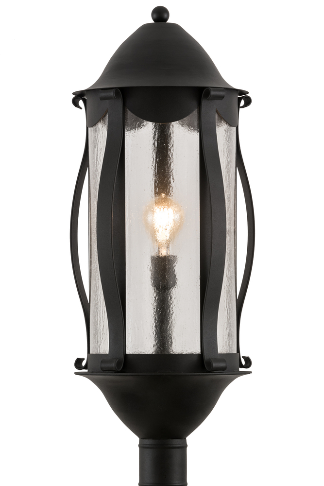 Blending European charm with old world styling, Auvillar is an ideal Post Top lantern. Ideal for fine interior and exteriors, this lovely fixture features a Clear Seeded Glass lens which is complemented with a decorative frame and hardware in an Old Wrought Iron finish. The fixture is custom crafted in the USA. Custom sizes, colors and styles are available, as well as dimmable energy-efficient lamping options such as LED. The 13-inch wide fixture is UL and cUL listed for dry, damp and wet locations.