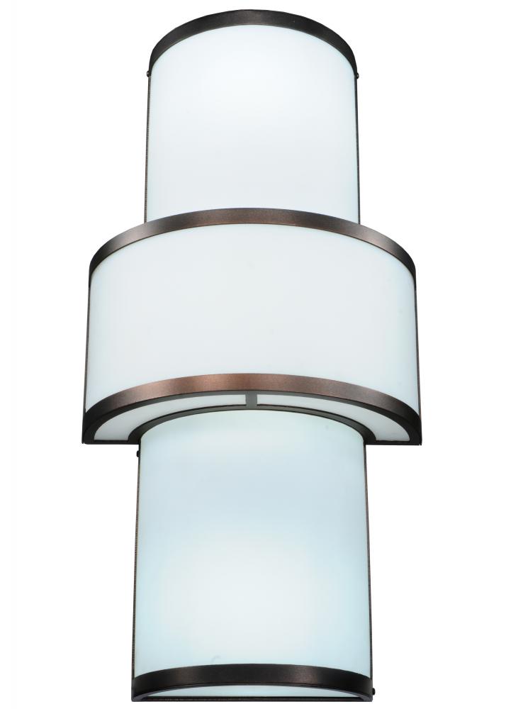 A luxurious multi dimensional design reveals the elegant, distinguished architectural look of this wall fixture. Clean sophistication astounds with round surfaces and straight lines to enhance a room while providing an effective source of light. The fixture features a cylindrical diffuser wrapped with a decorative element, both featured in Statuario Idalight. The luminaire is enhanced with Mahogany Bronze finished accents and hardware and is perfect illumination for corridors and other rooms. Handcrafted by highly skilled artisans in the USA. Options include energy efficient lamping options, as well as custom sizes, styles and colors. This sconce is UL and cUL listed for damp and dry locations.
