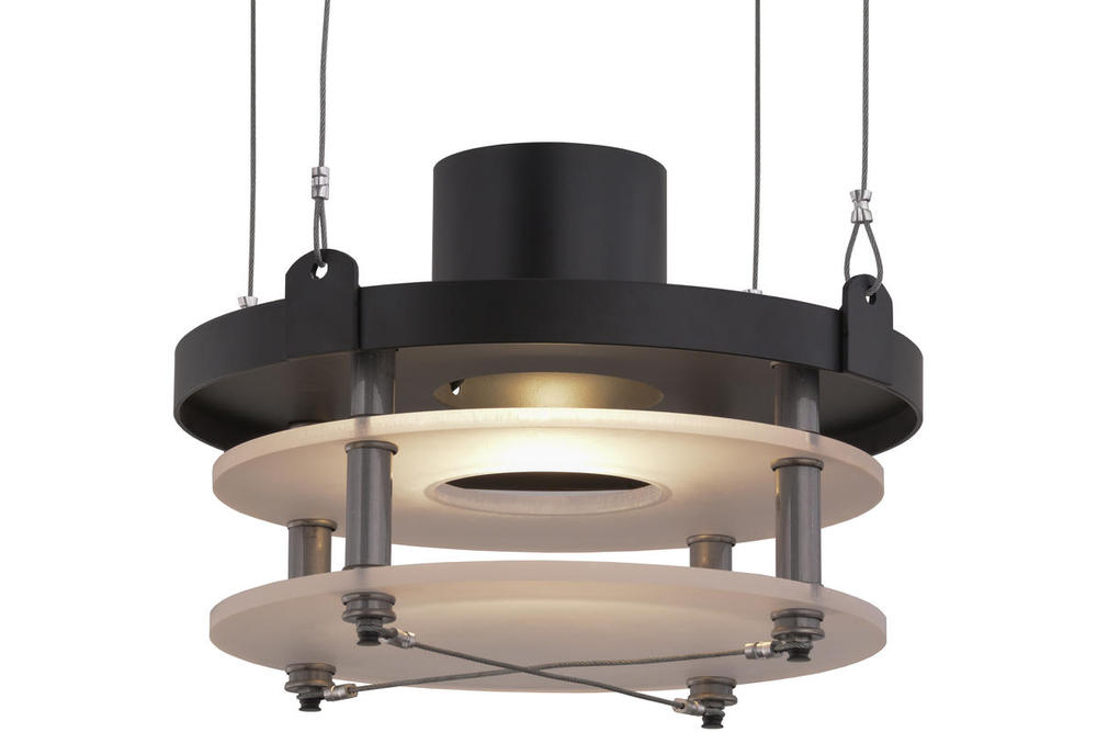 Energized by inventions that advocate reason, capitalism and individualism, Atlantis takes a contemporary approach to an industrial design. This pendant deploys thick layers of Crystal Idalight halos with a Satin finish, connected with columns and hardware that are featured in Raw Steel and Black Deco finishes. Wire suspensions provide additional support and a decorative touch. The fixture is custom crafted in the USA. Custom colors, styles, sizes and dimmable energy efficient lamping options such as LED are available. UL and cUL listed for dry and damp locations