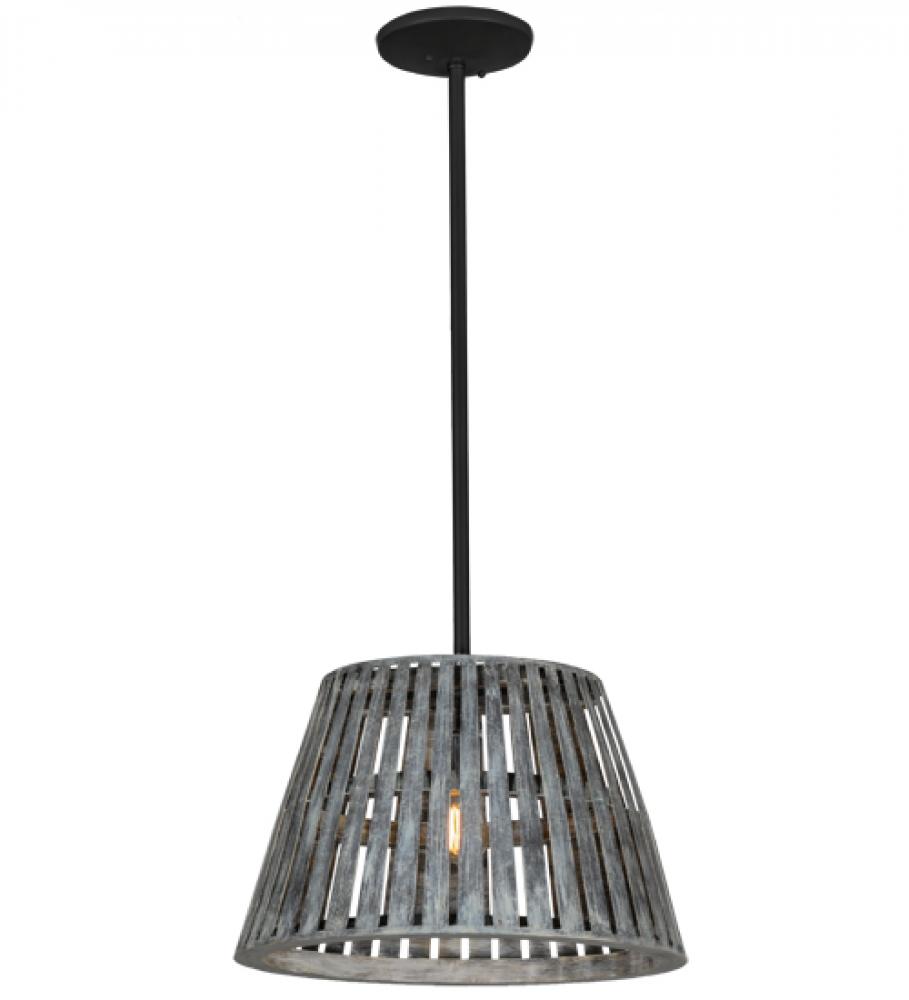 Elegant charm blends with rustic beauty. This unique ceiling pendant is inspired by vintage peach baskets traditionally bound with wooden staves and used for gathering peaches, apples and other fruits. Not just a popular fruit, the peach symbolizes immortality and long life. The pendant features the shade in a Weathered Wicker finish and the hardware with a Nickel finish.The overall height ranges from 15 to 42.5 inches as the stem length can be adjusted in the field to accommodate your specific lighting application needs. Handcrafted by highly skilled artisans in our 180,000 square manufacturing facility in Yorkville, New York. Shade colors, metal finishes and sizes can be customized. UL and cUL listed for dry and damp locations.