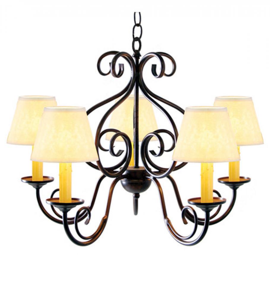 The perfect centerpiece for any room, Jenna offers a sumptuous decorative design featured in a Cajun Spice finish. Elaborate arms, scrolled accents, and five bobeches embrace faux candlelights topped with Celadon Textrene shades that add a touch of elegance and warm ambient lighting to your interiors. The frame and luxurious design evoke a rich, lustrous charm. Crafted by hand in our Yorkville, NY manufacturing facility, this fixture is available in custom sizes, styles and colors, and with dimmable, energy efficient lamping options such as LED. The chandelier is UL and cUL listed for damp and dry locations.