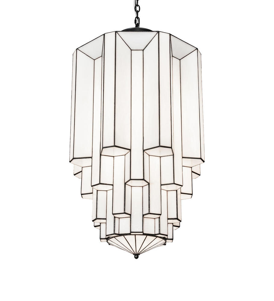 Designed with the glitz and glam of old fashioned movie theaters. Paramount evokes a romantic allusion with a dramatic lighting design that features a White Opal Glass diffuser created using the famous Meyda Tiffany famous copperfoil construction. Multi layers and levels of enclosed glass towers create an extraordinary dimensional effect. The pendant features Blackened Brass. The overall height ranges from 48 to 78 inches as the chain length can be easily adjusted in the field to accommodate your specific lighting needs. Handcrafted in our 180,000 square foot manufacturing facility in Yorkville, New York. Diffuser colors, metal finishes and fixture sizes can be customized to your needs. UL and cUL listed for dry and damp locations.