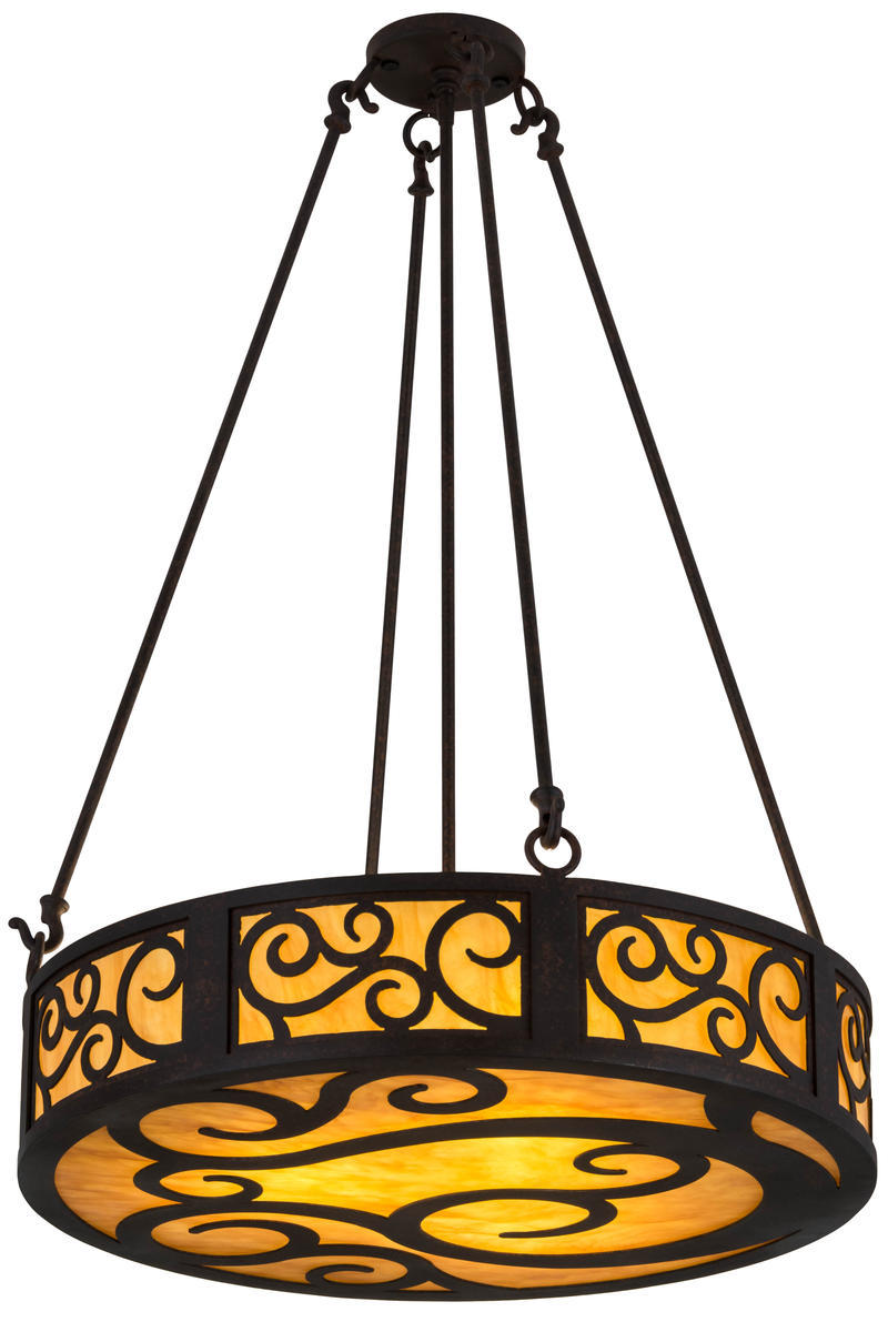 A touch of warm opulence is blended with elegant scroll-like styling. This pendant offers a lovely transitional style, which is handcrafted with decorative accents and hardware featured in a stunning Cajun Spice finish. The Dean fixture highlights an Ambra Siena Idalight diffuser, which projects beautiful ambient illumination. Custom crafted in the USA, this exquisite fixture is available in custom sizes, styles, colors and dimmable energy efficient lamping such as LED. The 24-inch pendant is UL and cUL listed for damp and dry locations.