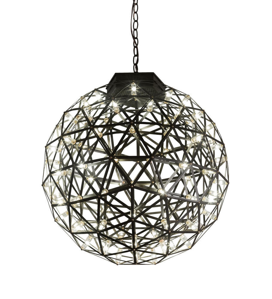 A truly global design. The complex configuration of Geosphere features an Oil Rubbed Bronze frame. Integral energy efficient LEDs project beautiful ambient illumination. The overall height of the pendant ranges from 29 to 148 inches as the chain length can be easily adjusted in the field to accommodate your specific lighting application needs. Handcrafted in our 180,000 square foot manufacturing facility in Yorkville, New York. Additional sizes and finishes are available. UL and cUL listed for damp and dry locations.