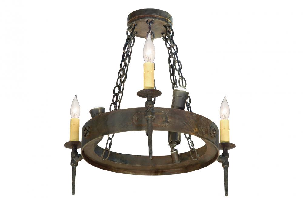 Bring Gothic Revival with a rustic motif into your home with the elegant Warwick Chandelier. Three Antique Gold faux candles perched atop bobeches feature 3 uplights that provide ambient illumination. Crafted of iron & waxed by hand resulting in a living finish that will patina over time. Waxed Metal finishes require annual maintenance. Warwick is available in dozens of additional finishes that do not require maintenance, upon request. Overall height ranges from 31 to 61 inches as the chain length can be easily adjusted in the field. Custom crafted in our 180,000 square foot manufacturing facility in Yorkville, NY. Candlelight colors, fixture styles and sizes can be customized. UL and cUL listed for dry and damp locations.