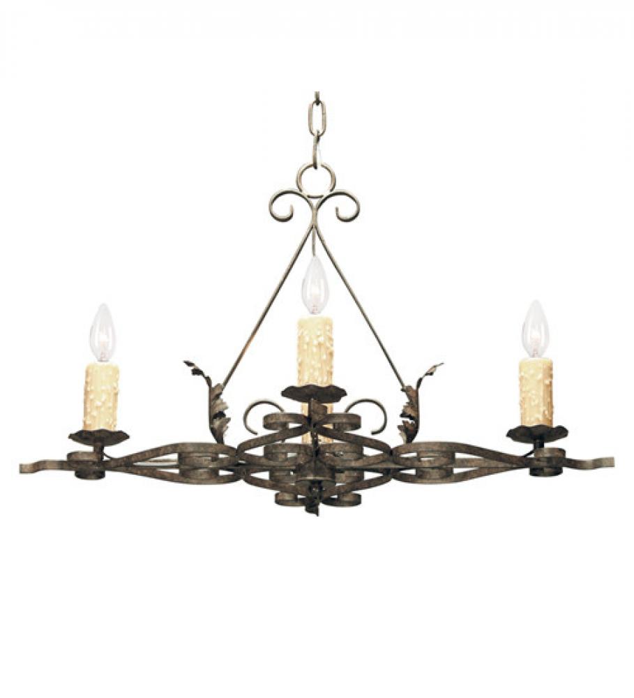 Enjoy the rich, classic styling and distinctive sophisticated look ofElianna. Four Honey Amber faux candlelights perched atop of custom tailored bobeches are connected together with an elaborate oblong frame featuring interlocking scroll designs for exquisite aesthetic appeal. The decorative accents, frame and hardware are featured in a stunning Chestnut finish. The fixture is custom crafted by artisans in our manufacturing facility in Yorkville, New York.Custom sizes, designs, colors and dimmable energy efficient lamping options such as LED are available. This fixture is UL and cUL listed for damp and dry locations.