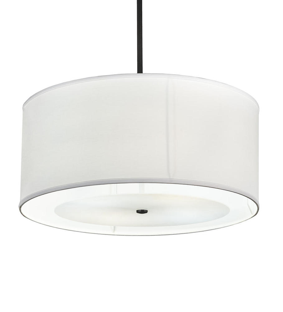 Designed with a curved profile and a clean architectural look. This appealing and versatile ceiling pendant reveals a sophisticated aesthetic. The Cilindro pendant features an Ivory Textrene shade and enhanced with a Statuario Idalight bottom diffuser that is accented with Ivory trim. The hardware is featured in a Black Texture finish. Custom crafted by highly skilled artisans in our 180,000 square foot manufacturing facility in Yorkville, NY. Custom sizes, finishes and diffuser colors available. UL and cUL listed for dry and damp locations however we do not recommend installing it in spaces that experience a large amount of moisture due to the fabric shade.