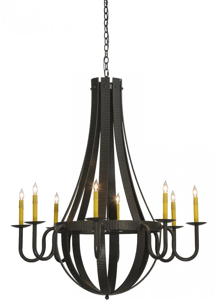 Inspired by Antique Wooden staves traditionally bound by wooden or metal hoops in the construction of beer barrels and wine casks. The Timeless Bronze finished steel chandelier is accented with delicate faux candles suspended from graceful arms and bobeches. Rustic charm blends with gothic beauty. Ideal for an inn, home, restaurant, retail shop and other locations. Custom crafted by Meyda artisans in our manufacturing facility upstate New York.