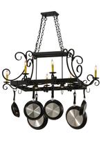 An upscale transitional lighting design, Caiden is highlighted with large scroll accents and a Timeless Bronze finished frame with hooks to display pots and pans for easy access in kitchens. Handcrafted by highly skilled artisans in our 180,000 square foot manufacturing facility in Yorkville, New York. Options include dimmable energy efficient lamping, as well as custom sizes, styles and colors. UL and cUL listed for damp and dry locations.