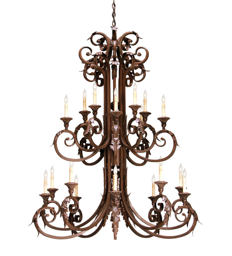 Unsurpassed elegance, grace and beauty are defined by the Seffatina Chandelier. With shapely curves in an exquisite Rustic Iron finish, the chandelier features a lustrous symphony of Hand-Forged Iron Scrollwork and Crystal Pendalogs, accented with metal Acanthus Leaves throughout. 20 Delicate faux candlelights create beautiful ambient illumination. The luxurious chandelier will add sophisticated sparkle and romantic charm to any room. The number of lights, metal finishes and fixture size can be customized to meet your needs. Handcrafted by highly skilled artisans in our 180,000 square foot manufacturing facility in Yorkville, New York. UL and cUL listed for dry and damp locations.