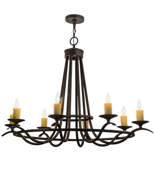 Add graceful detail and beautiful ambient illumination to any interior decor with this well balanced Octavia lighting design. 8 Amber faux candlelights are perched on bobeches, which are embraced by an exquisite curved frame with a Chestnut finish. Custom crafted in our manufacturing facility in the USA, this chandelier is perfect for creating a welcoming environment in any space. Choose a custom color, style, size or lamping option to individualize the look that you need. This 48-inch fixture is UL and cUL listed for damp and dry locations.