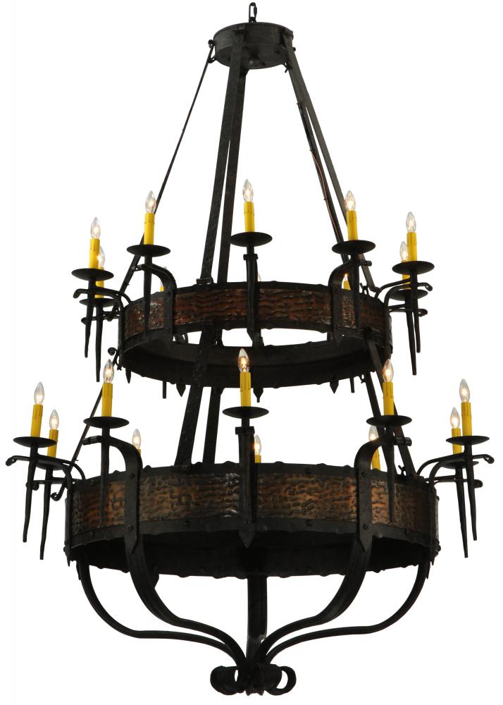 Hand hammered Metal Banded belts embellish two Blackened Copper finished tiers of this breathtaking chandelier. The fixture is enhanced with a Coffee Bean finish. 20 Ivory faux candlelights embraced by delicate bobeches are attached to gracefully curved arms and provide beautiful ambient lighting. Ideal for illuminating lobbies, ballrooms and large spaces in homes, hotels, retailers and other commercial locations. Overall height ranges from 72 to 190 inches as the chain length can be easily adjusted in the field to accommodate your specific lighting application needs. Handcrafted in our 180,000 square foot manufacturing facility in Yorkville, NY. Fixture designs, metal finishes and chandelier sizes can be customized to meet your needs. UL and cUL listed for damp and dry locations.