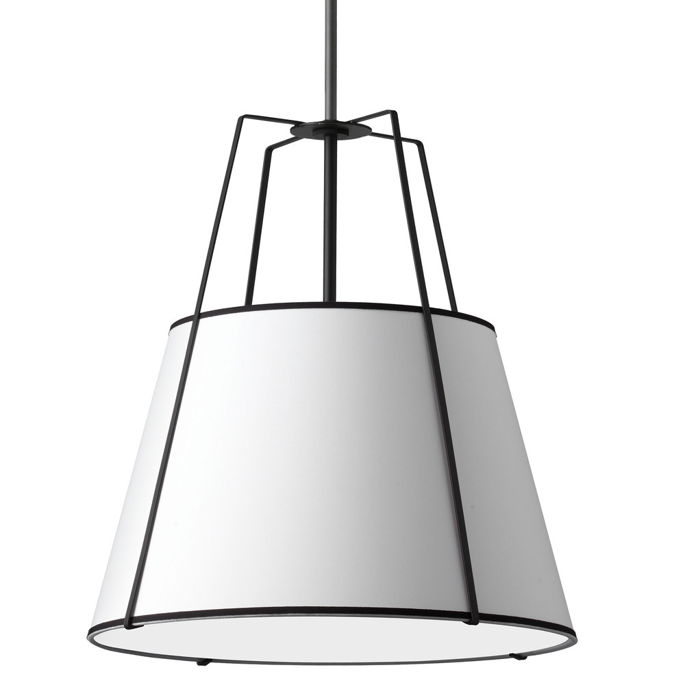 In geometry, the trapezoid is a four-size shape with one set of parallel sides. That shape is repeated throughout the eye-catching scheme of the Trapezoid family of lighting. The trapezoid shape is created by a uniquely crafted metal frame in your choice of finish. A drum-style shade in a variety of shapes determines the overall design. The fabric shade and metal frame come in a range of contrasting and complementary combinations. It's a design with clean outlines for a look that's a contemporary classic, with variations that will add luxury to any room of your home.