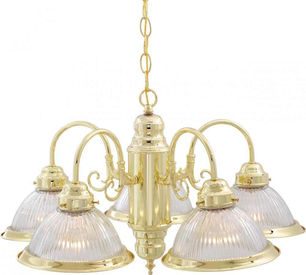 5 Light - 22" - Chandelier - with Clear Ribbed Shades
