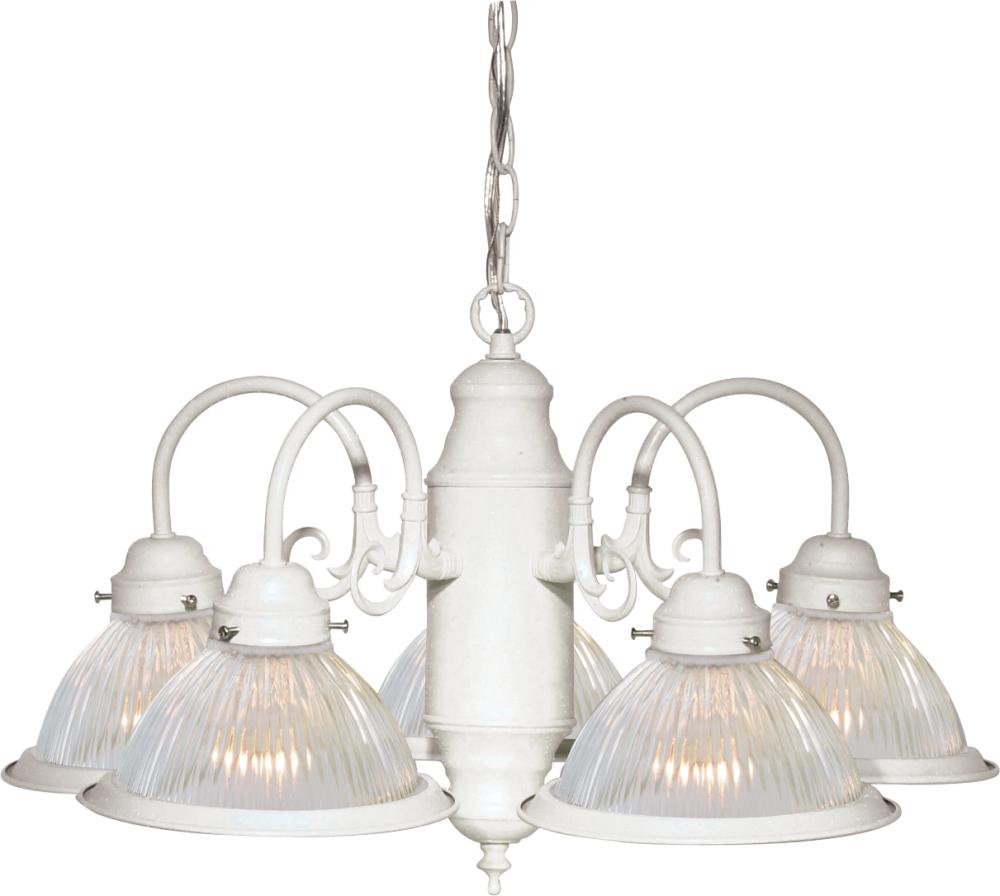 5 Light - 22" - Chandelier - With Clear Ribbed Shades