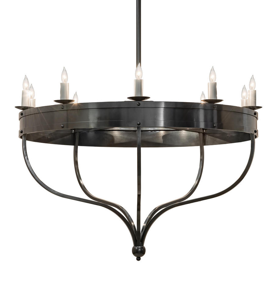 Custom crafted for the King or Queen in your castle. Parnella presents a touch of warm opulence blended with handsome styling. This chandelier offers an extraordinary transitional style as sparkling illumination evokes from 10 complementary faux candlelights. The solid ring and finial are enhanced with a Charcoal Gray finish. This fixture will make a design statement as a centerpiece in any room including an entryway, dining room, lobby, conference room and other locations. Handcrafted in our 180,000 square foot manufacturing facility in Yorkville, New York. Available in custom sizes, styles and finishes. UL and cUL listed for dry and damp locations.
