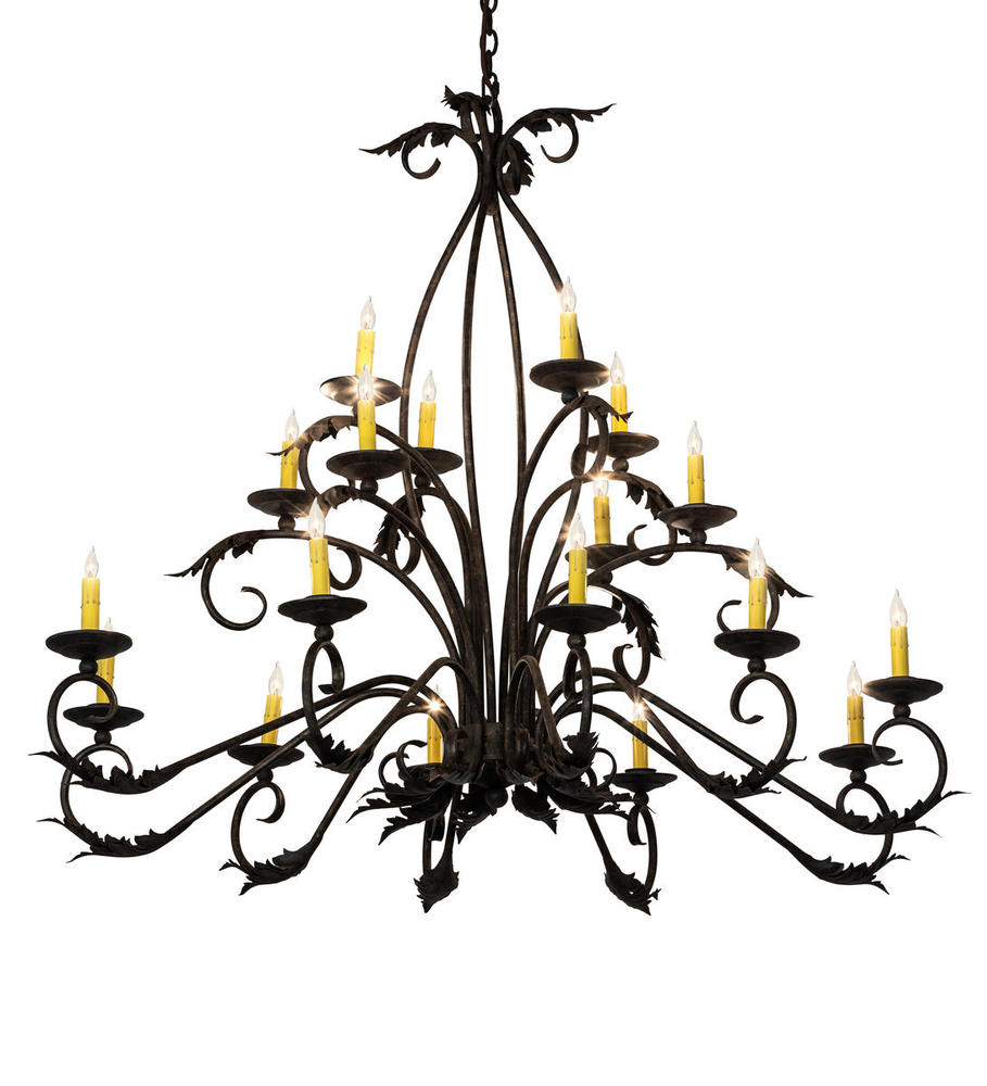 Inspired by the beauty and grace of ballrooms in renowned castles and mansions spanning the globe, Windsor features 18 Ivory faux candlelights that are perched on bobeches with Acanthus Leaf Accents and Hand-Forged Iron Scrolled Arms in an Antiquity finish. Overall height ranges from 49 to 168 inches as the chain length can be easily adjusted in the field to accommodate your specific lighting application needs. Handcrafted in our 180,000 square foot manufacturing facility in Yorkville, NY. Candlelight colors, metal finishes and chandelier sizes can be customized to meet your needs. UL and cUL listed for damp and dry locations.