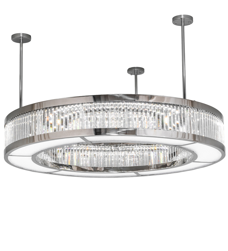 Luxurious jewelry inspired elements elevate this design aesthetic to a new level. Exquisite Crystal Baguettes provide a prismatic brilliance while illuminated by Integral LEDS for energy efficient ambient light. This pendant is enhanced with a Chrome finish and a Rainfall Idalight bottom diffuser. The number of crystals, metal finishes and fixture size can be customized to your needs. UL and cUL listed for dry and damp locations.