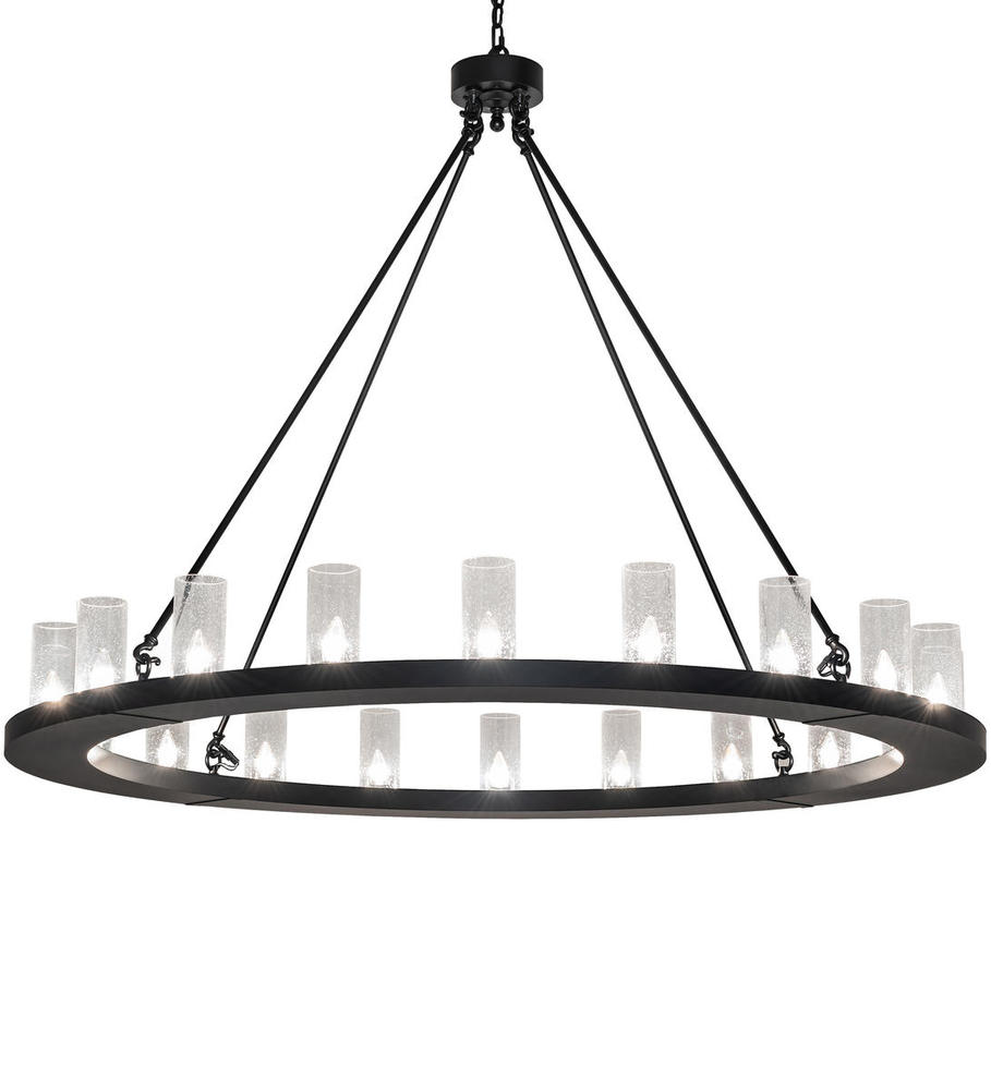 Blending an elegant style with a classic distinguished look. Loxley is custom crafted with 20 Clear Seeded Glass Cylindres on a frame which is featured in a Solar Black finish. The fixture is ideal for illuminating entryways, lobbies and dining areas in residential, hospitality and commercial settings. The overall height ranges from 53 to 124 inches as the chain length can be easily adjusted in the field to accommodate your specific lighting needs. The Loxley Chandelier is featured in our American made, American designed, handcrafted Transitional Lighting Collection. Manufactured in Yorkville, New York. UL and cUL listed for dry and damp locations.