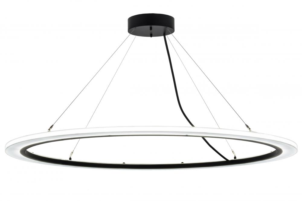 A modern sophisticated pendant featuring an extraordinary element of ambient light, this spectral halo creates a stunning visual effect and breathtaking drama. Supported by sturdy spacecraft cables for balance and precision, this Solar Black finished ring reveals a Contrail Mist Idalight diffuser. Meyda's integral LEDs deliver dimmable, robust illumination, energy savings, minimal maintenance and long life. Custom sizes, styles and finishes are available, as well as other lamping options. This upscale Anillo 60-inch wide pendant is UL and cUL listed for damp and dry locations.