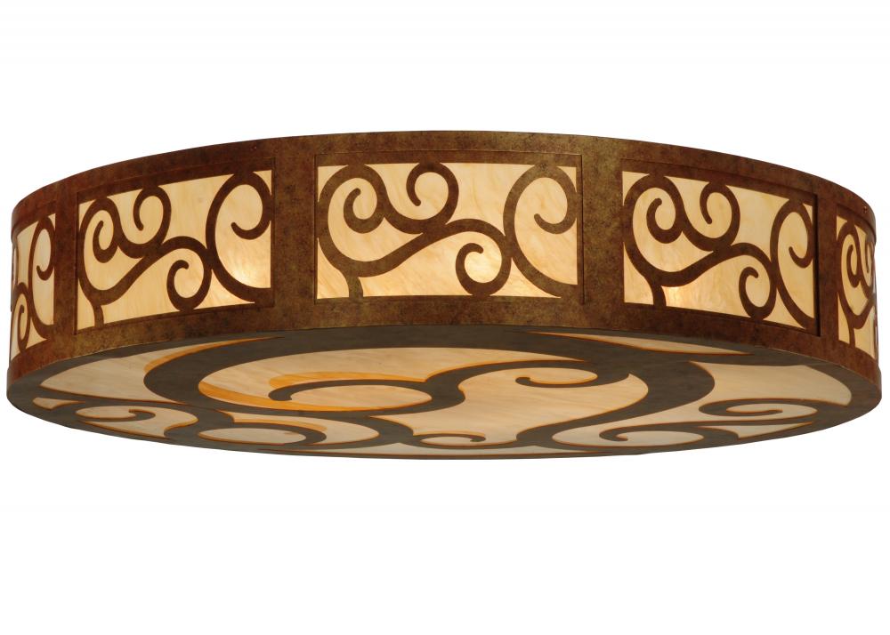 A touch of warm opulence is blended with elegant scroll-like styling. This ceiling fixture offers a lovely transitional style, which is handcrafted with decorative accents and hardware featured in a stunning Autumn Leaf finish. The impressive Dean fixture integrates a Sahara Taupe Idalight diffuser, which projects beautiful ambient illumination. Handcrafted in our 180,000 square foot manufacturing facility in Yorkville New York. This Grand styled fixture is available in custom sizes, styles, colors and dimmable energy efficient lamping such as LED. UL and cUL listed for damp and dry locations.