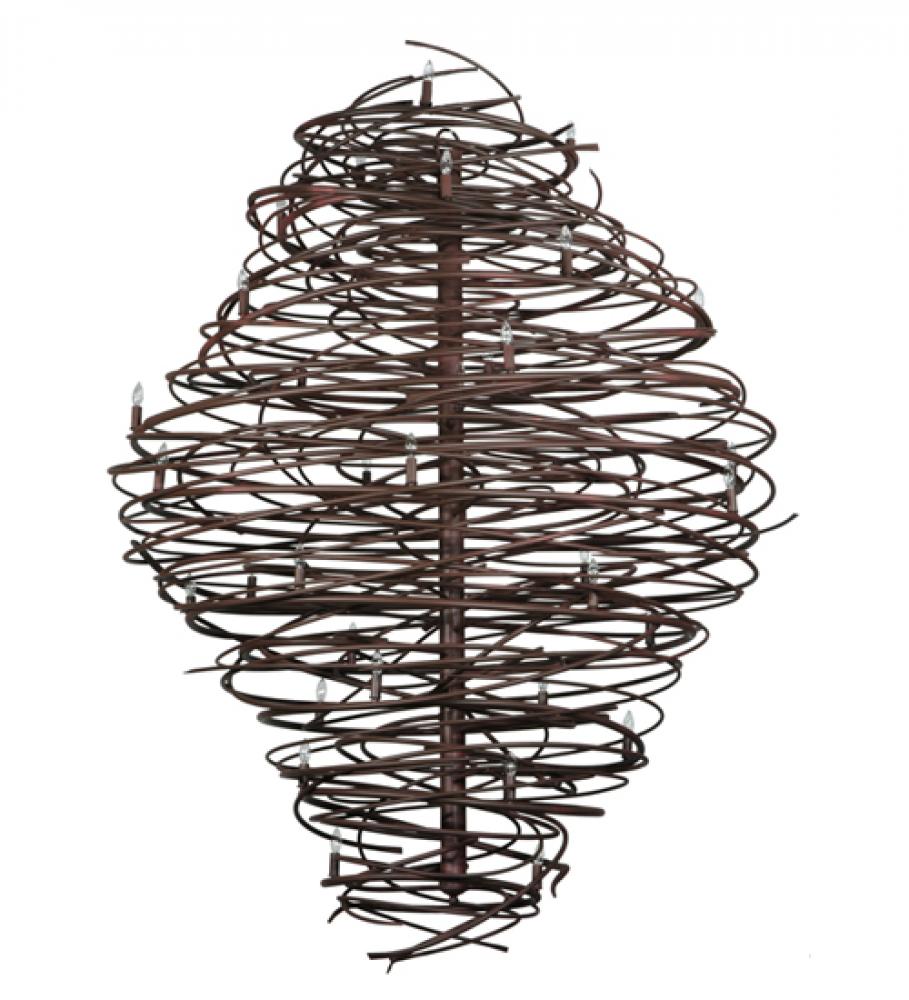 The bold, eye-catching Cyclone simulates whirling winds of energy and gyration with twisting steel that is accentuated with 36 delicately placed beacons to help you weather the storm. The winding mass of steel surrounds a sturdy post, all featured in our Cafe Noir on Rust finish. Make an impressive design statement that will wow guests in lobbies, conference rooms, entryways and other residential and commercial spaces. The fixture is handcrafted by master artisans in our 180,000 square foot manufacturing facility in Yorkville, New York. Custom designs, styles, sizes and dimmable energy efficient lamping such as LEDs are available. UL and cUL listed for damp and dry locations.