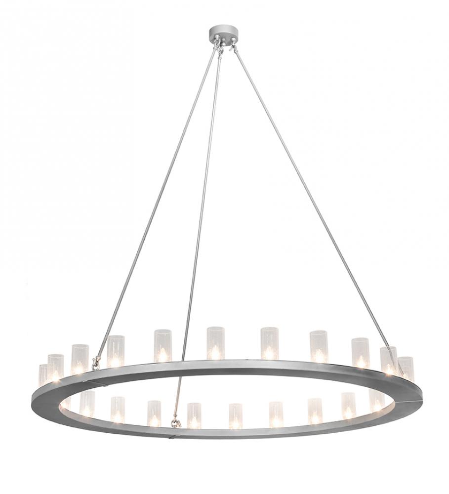 Blending an elegant style with a classic distinguished look, This grandiose Loxley chandelier is custom crafted with 24 Clear Seeded Glass Cylindres on two tiers. The chandelier is featured in a Weatherable Silver finish. Ideal for illuminating dining areas, conference tables, lobbies and other residential, hospitality and commercial spaces. Handcrafted by highly skilled artisans in our 180,000 square foot manufacturing facility in Yorkville, New York. Diffuser colors, metal finishes and fixture sizes can be customized to your needs. UL and cUL listed for dry and damp locations.