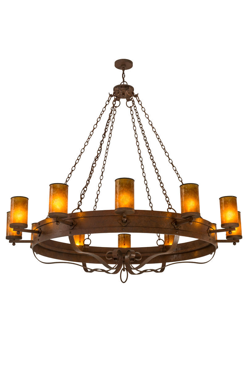 Custom crafted for the King or Queen in your castle, Parnella presents a touch of warm opulence blended with handsome rustic styling. This chandelier offers an extraordinary transitional style as sparkling illumination evokes from 12 stunning Amber Mica diffusers that adorn the perimeter of this Solid Steel ring with decorative arms and accents in a Rusty Nail finish. This fixture will make a design statement as a centerpiece in any room including an entryway, lobby, conference room and locations. Quality materials and hand detailed American craftsmanship are perfected by years of time honored artistry, passed down from generations of prolific artisans. Handcrafted by highly skilled artisans in the USA, this fixture is available in custom sizes, styles, colors and dimmable energy efficient lamping options. Parnella is UL and cUL listed for dry and damp locations.