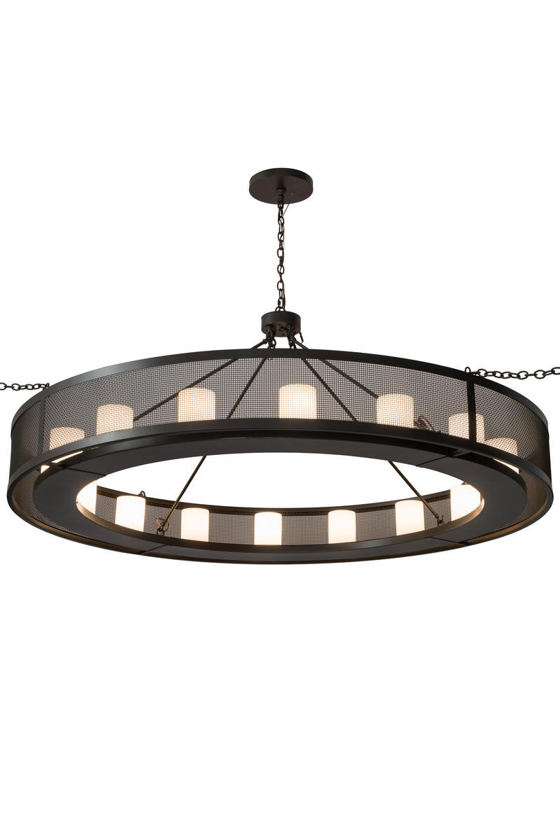 Discover a unique decorative look and industrial lighting design with this dramatic caged frame that reveals 16 Statuario Idalight Cylindres illuminating from within. The solid metal hardware, frame and grill are featured in a stunning Timeless Bronze finish. The fixture, which lights up with 16 Customer supplied, GU24 10-watt LED Lamps, is ideal for illuminating lobbies, conference rooms, entryways and other residential and commercial spaces. Handcrafted by highly skilled artisans in the USA, this fixture is offered in a myriad of custom lamping options such as LED, as well as sizes, designs and finishes. The 78-inch wide fixture is UL and cUL listed for damp and dry locations.