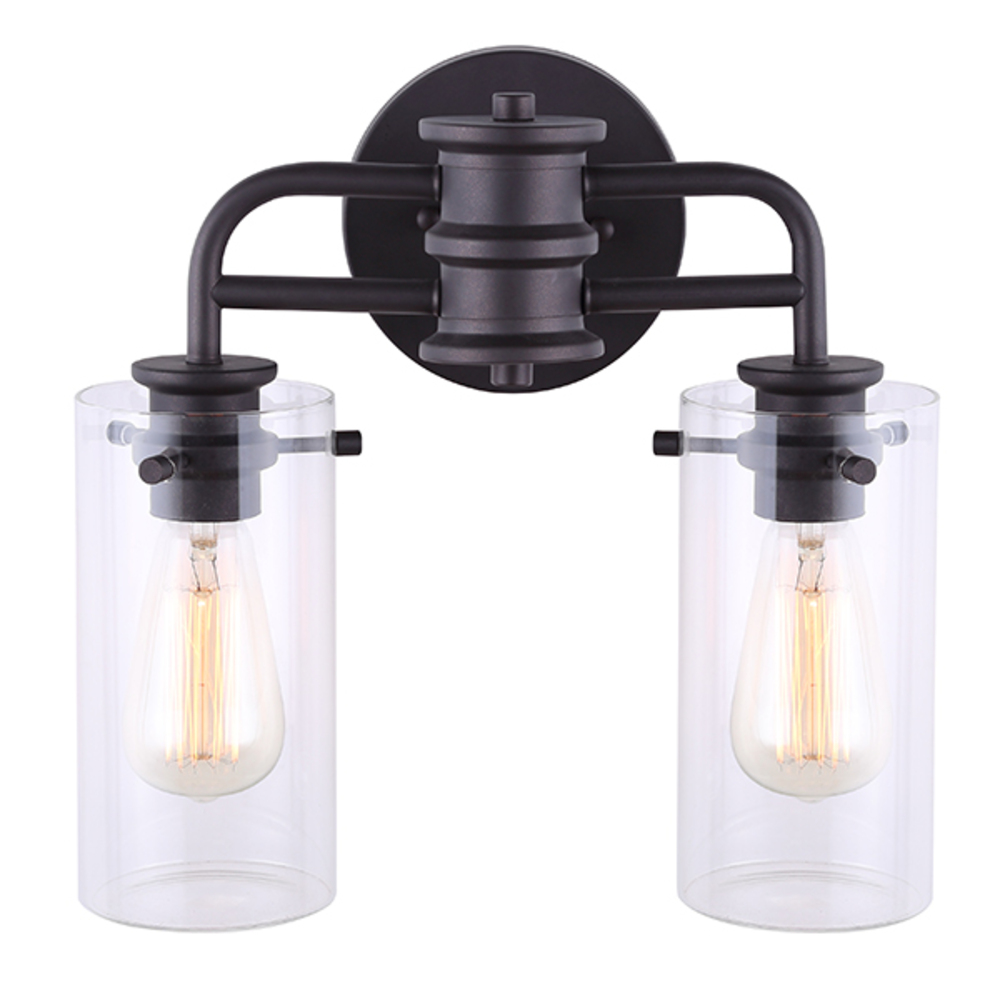 ALBANY, 2 Lt Vanity, Clear Glass, 100W Type A, 14 1/4" W x 13 1/4" H x 6 1/2" D, Easy Connect Included