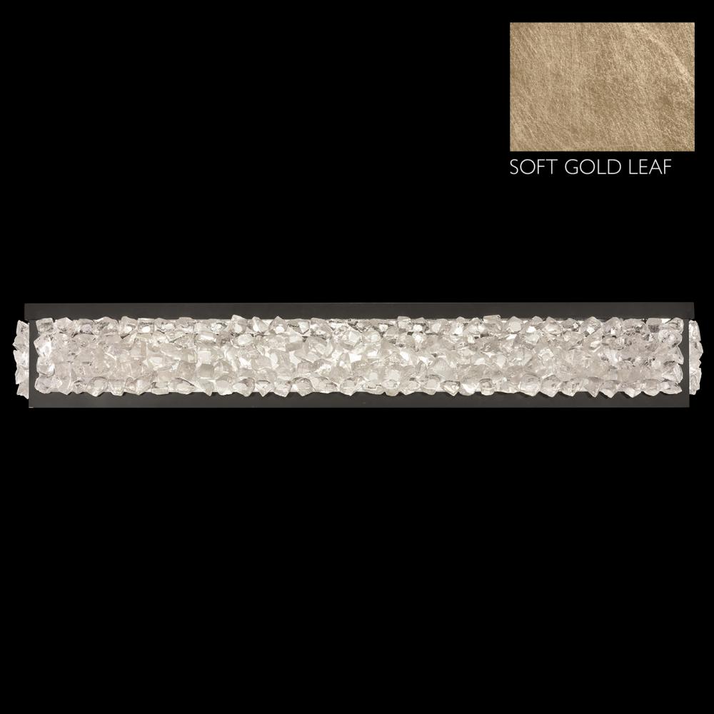 Luxury LED bath fixture in a champagne tinted gold leaf finish featuring hundreds of rough cut crystal glass gems that refract light in a manner reminiscent to the cirrus clouds ice crystals that form the lunar halo in the frozen night sky. Also available in platinized silver leaf or matte black.