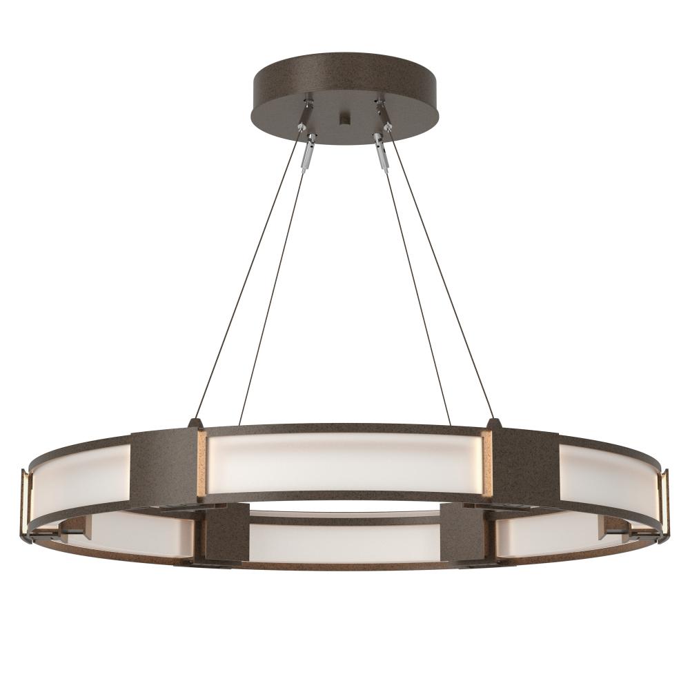 The popular Aura with a contemporary glass brightens any space. With lighting as functional as it is beautiful, the Aura's light is dispersed via its curved, double glass panels offered in either frosted or clear seeded glass. Six handcrafted steel elements serve to shade and adorn this stunning ceiling fixture.