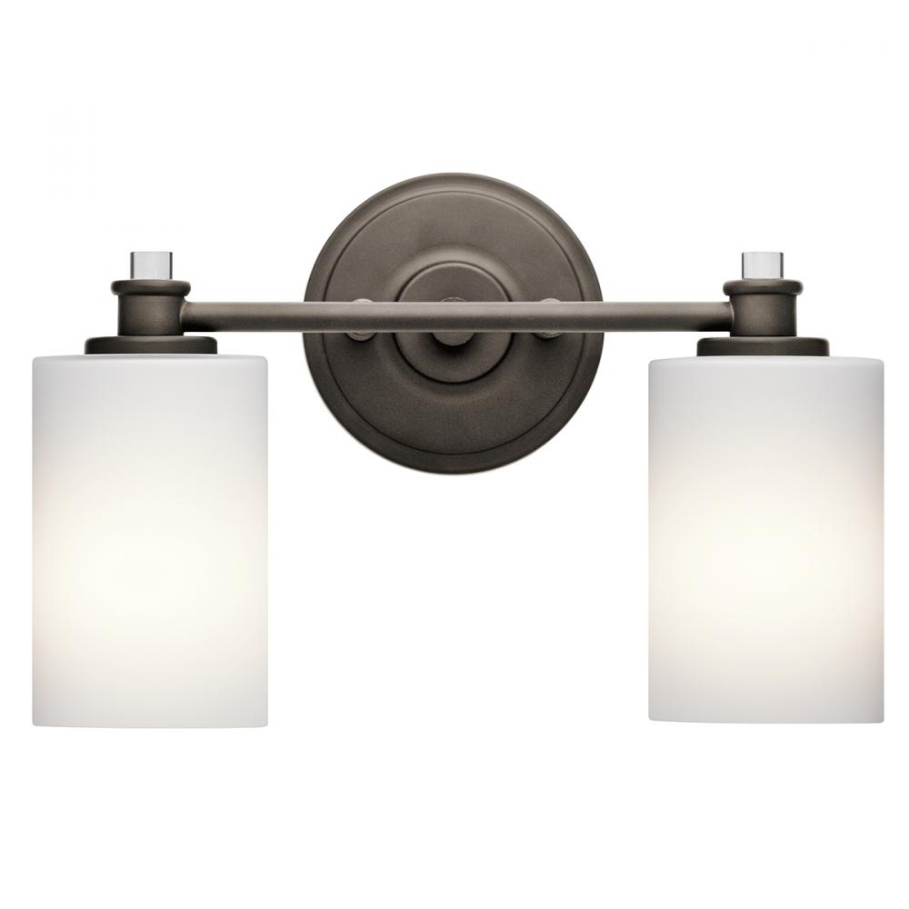 The Joelson 14" 2 light vanity light features a classic look with its Olde Bronze® finish and satin etched cased opal and clear glass accent glass. The Joelson vanity light is retro inspired and is perfect in several aesthetic environments, including traditional and modern.
