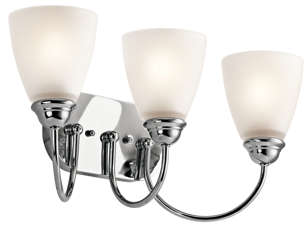 The Jolie™ 20.25" 3 light vanity light features a classic look with its Chrome finish and satin etched glass. The Jolie vanity light is perfect in several aesthetic environments, including transitional and traditional.