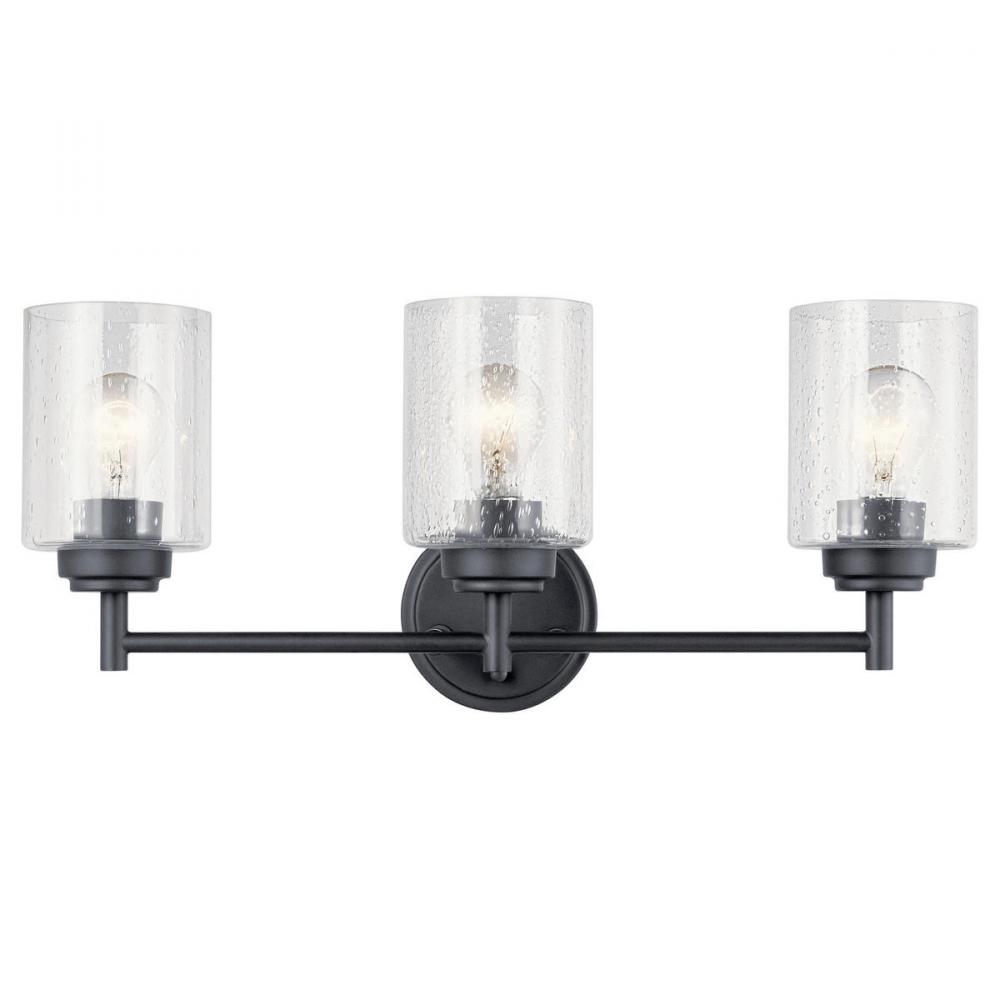 The Winslow 21.5" 3 light vanity light features a classic look with its Black finish and clear seeded glass. Winslow vanity light is perfect in several aesthetic environments, including traditional and transitional.