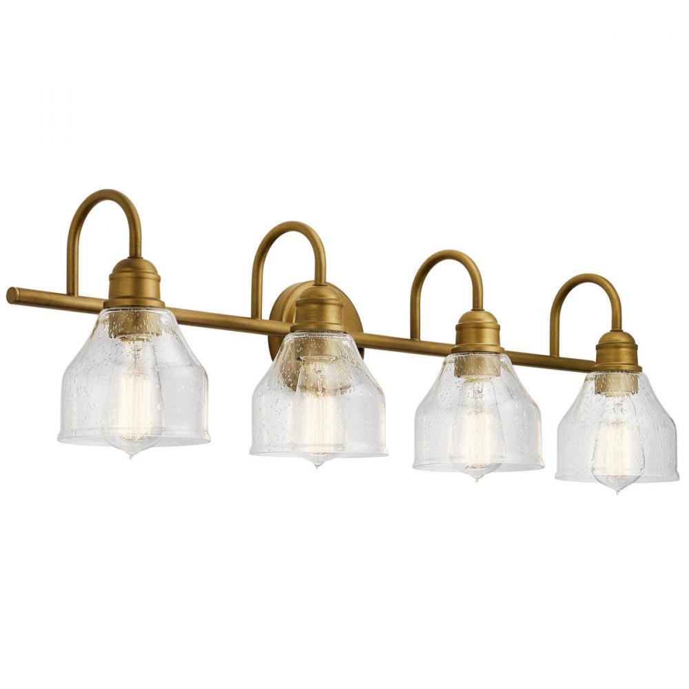 Create a masterpiece with this 4 light bath light from the Avery collection. In a Natural Brass finish with Clear Seeded glass.