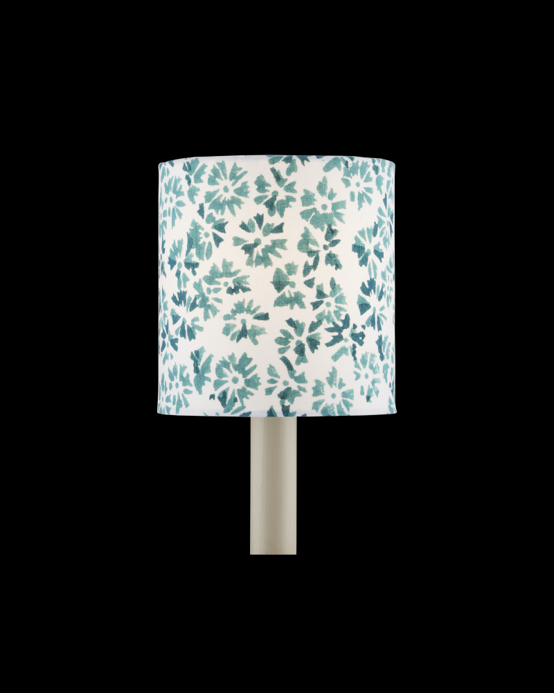 Petite shades are an easy way to bring added style to a space while also introducing color and texture. There are six different patterns on block-printed cotton in an array of colors from which to choose, in both tapered pleated and small drum shapes, in this collection. The density of the weave we've chosen makes these shades for chandeliers and wall sconces durable and elegantly saturated in color. The material is held taut on white wire frames to minimize hardware reflectivity when the fixtures are switched on, as you can see with this aqua version of the drum shade. Top Diameter: 5" Bottom Diameter: 5" Height: 5"