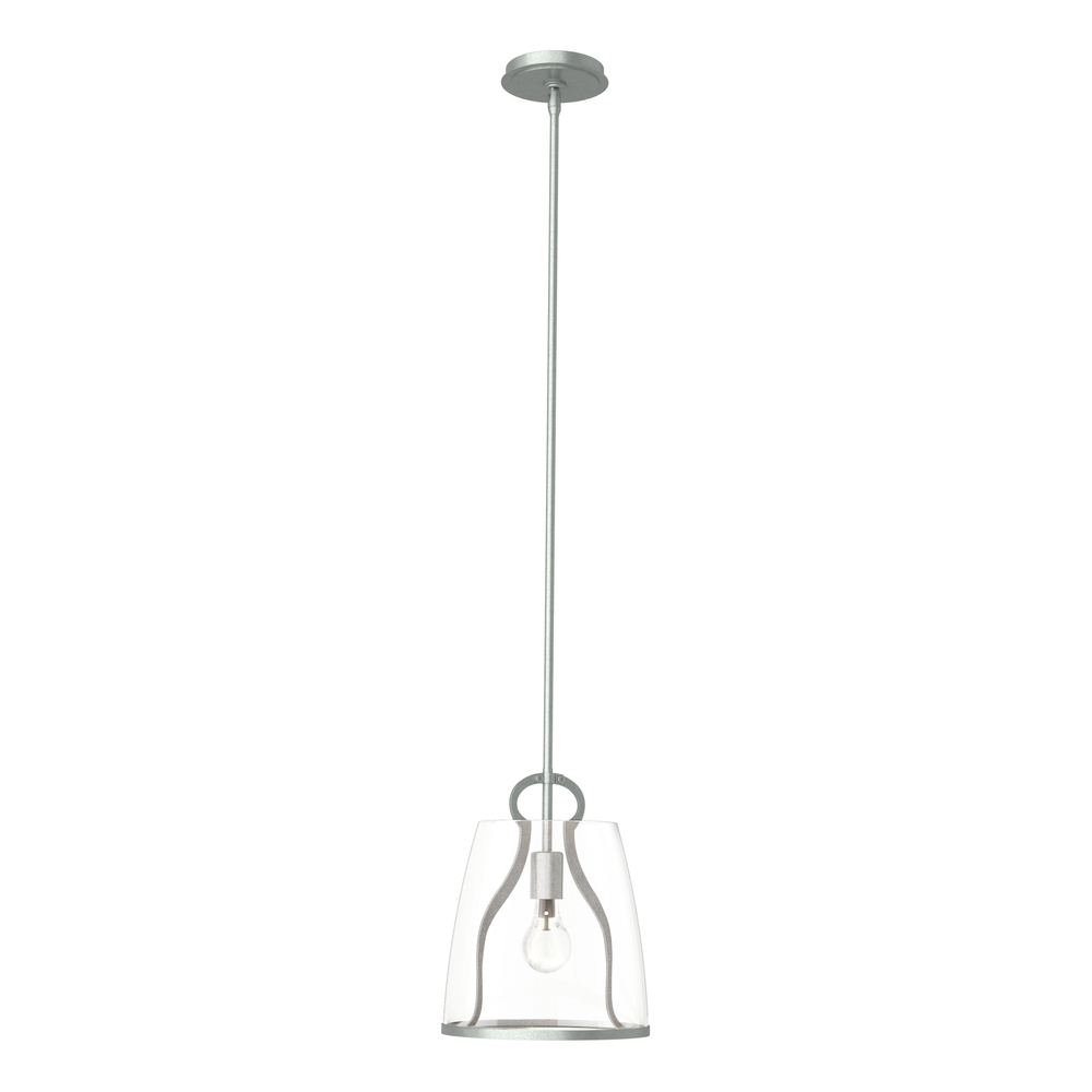 The perfect kitchen lantern, in addition to providing functional lighting, the Caliper Pendant is a conversation piece. Reminiscent of an antique tool within, the Caliper's large glass shade is supported by this "tool" and lower metal rim. Offered in two glass options, Clear or Plated Smoke for a more dramatic look. Available in all standard finishes.