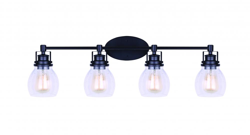 CARSON, IVL705A04BK, MBK Color, 4 Lt Vanity, Seeded Glass, 100W Type A, 33 IN W x 10 .25 IN H x 7 .25 IN D, Easy Connect Included