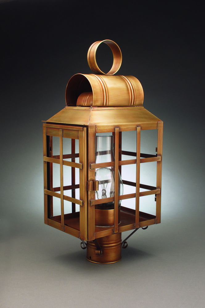 Culvert Top H-Bars Post Antique Brass Medium Base Socket With Chimney Clear Glass