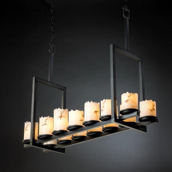 This Fourteen Light Candle Island Light has a Black Finish and is part of the Dakota Collection.