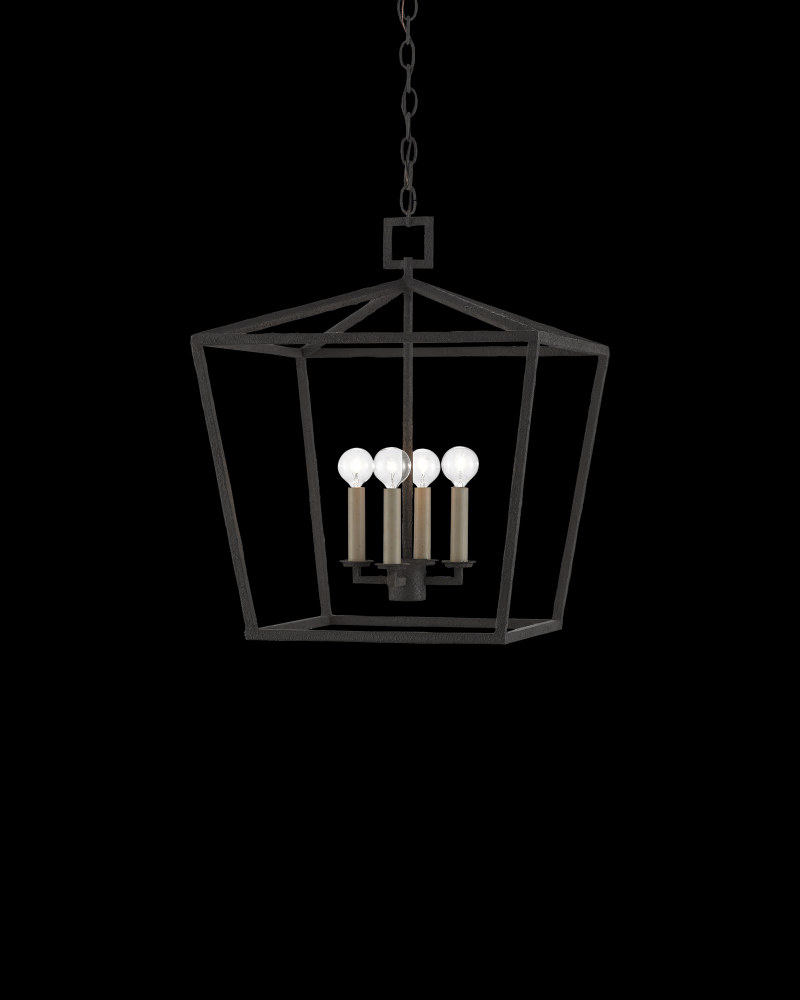 The Denison Black Medium Lantern is a hammered wrought-iron fixture in a Mole black finish. The classic lantern shape has stood the test of time to make it one of our most popular offerings. A design element of note is the square that fastens the lantern to the chain. Adjustable from 28.5" to 94" with use of included chain/rod kit/cable. If your space calls for a longer drop, additional chain/rods/cable is available for purchase.