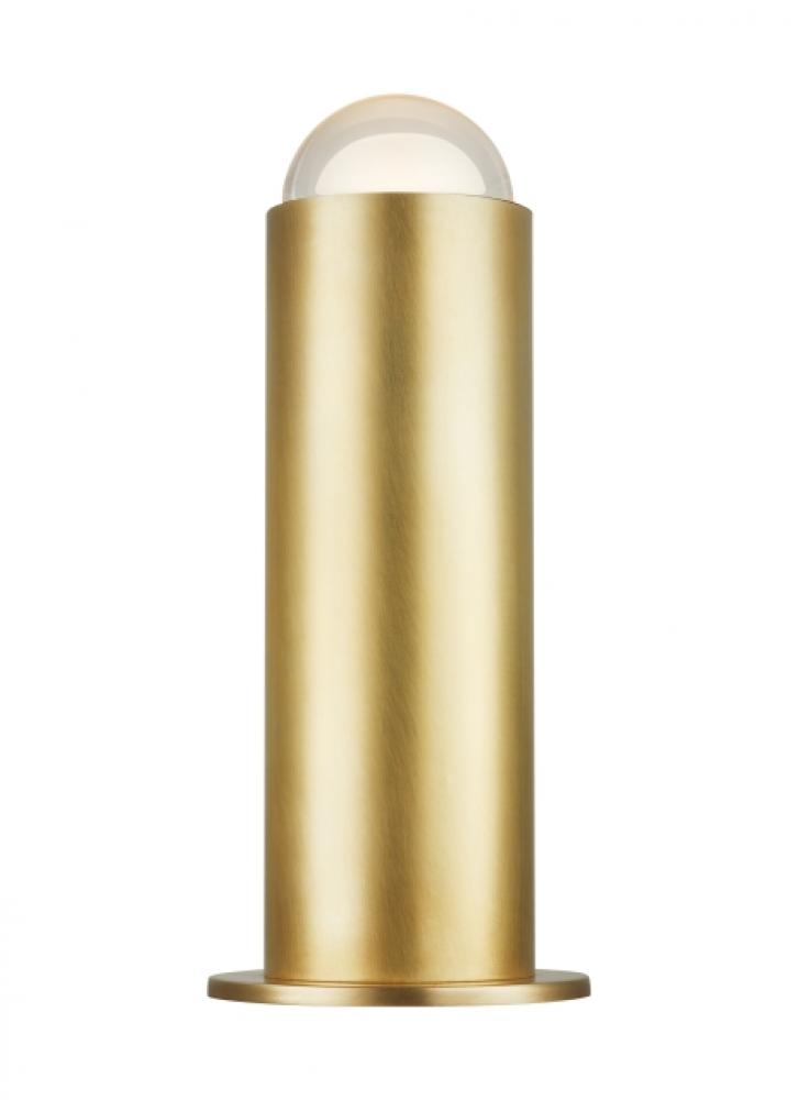 The Ebell Small Table Lamp by Kelly Wearstler for Visual Comfort Modern will make a bold statement in any space. The multi-dimensional domed glass prism is set on top of the pure cylindrical metal body. The concentrated warm LED within the frosted glass interior emits a state-of-the-art expression of light in this illuminating departure from the expected.