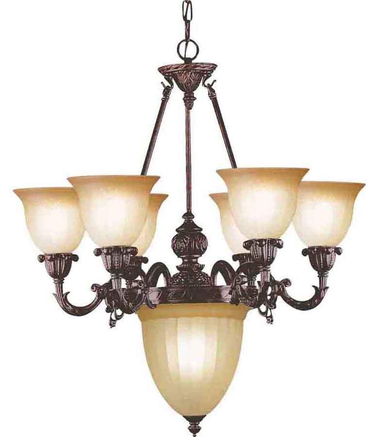 This Eight Light Up Chandelier has a Bronze Finish and is part of the Europa Collection.