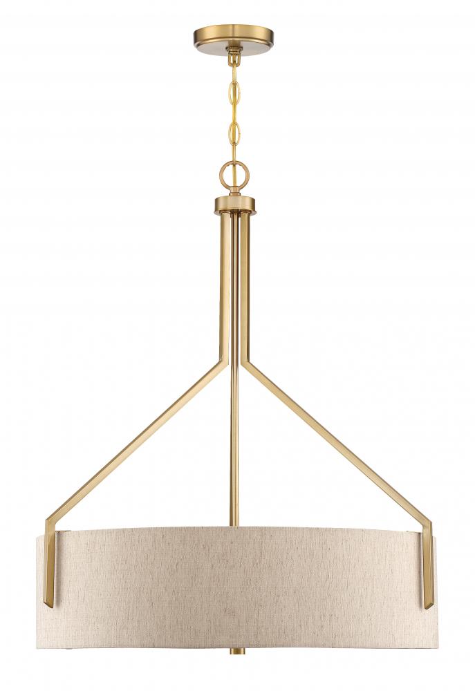 , Brushed Gold Down Pendant with Beige Linen + Etched Diffuser shade ideal for today's interiors