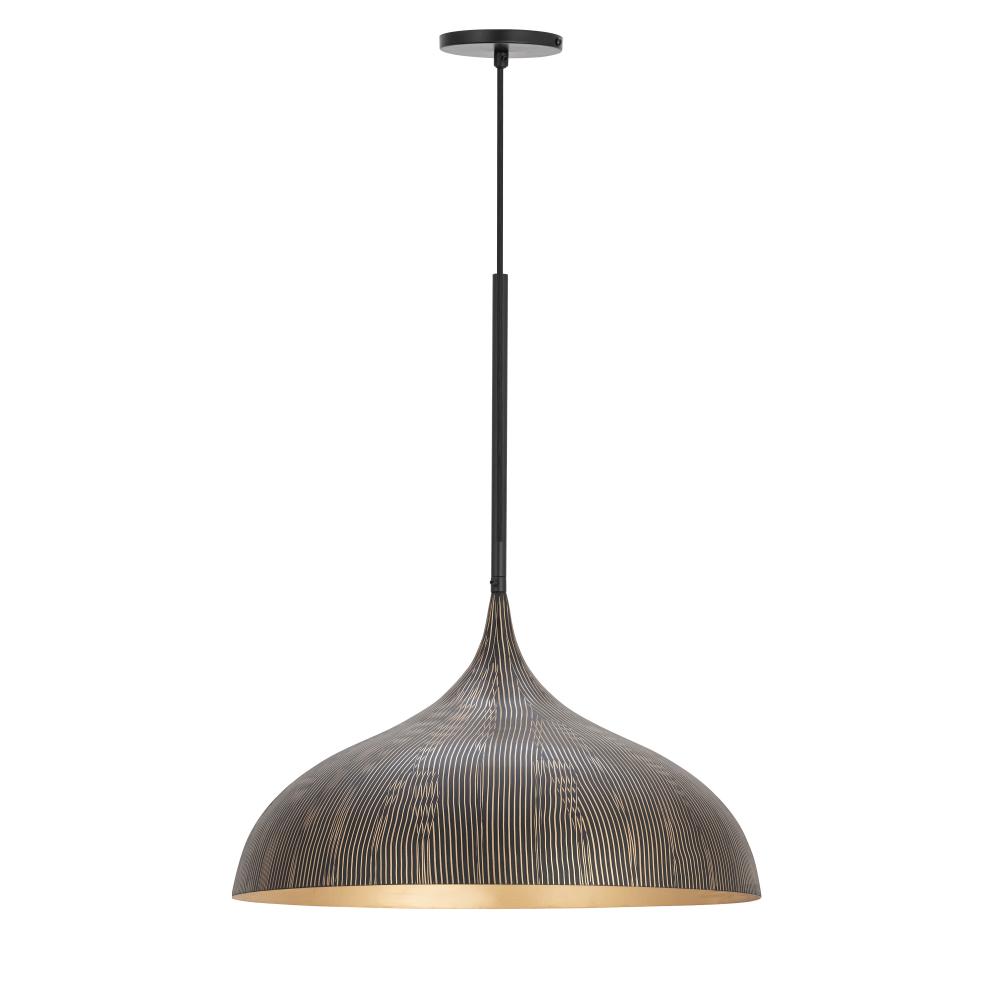 Graceful and sculptural, Fleur's gently flared silhouette brings a sense of quiet sophistication to any space. Hand-spun metal shades are adorned with a striated finish, scraped by hand to reveal glowing Gold undertones beneath layers of Matte Black or